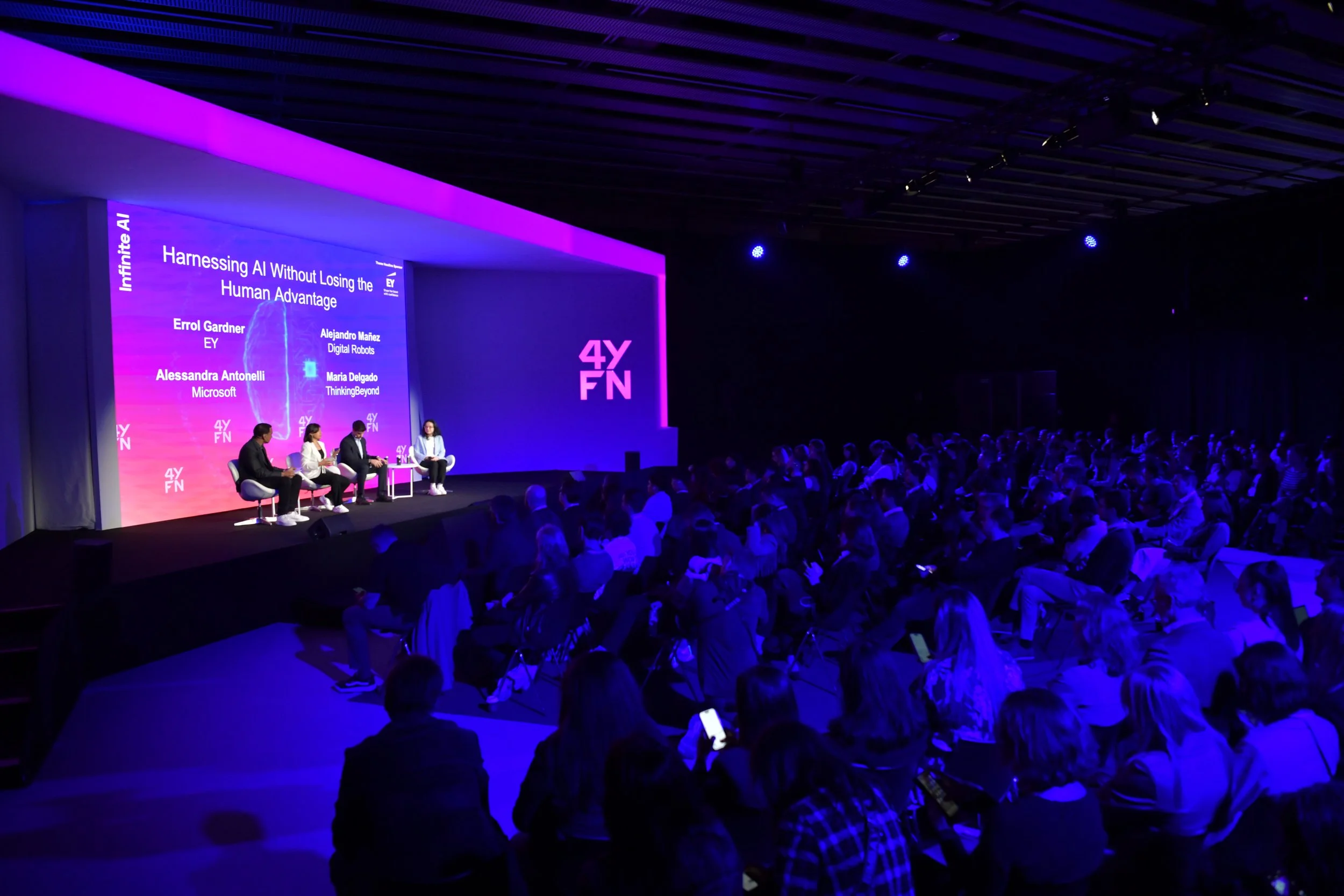El panel giró en torno a una pregunta clave para las organizaciones que están adoptando inteligencia artificial: cómo aprovechar el potencial de la IA sin perder la ventaja humana que define a las empresas. La sala de MWC / 4YFN completamente llena reflejaba el enorme interés que existe hoy en torno a esta cuestión, especialmente en un momento en el que la inteligencia artificial está transformando todos los sectores.